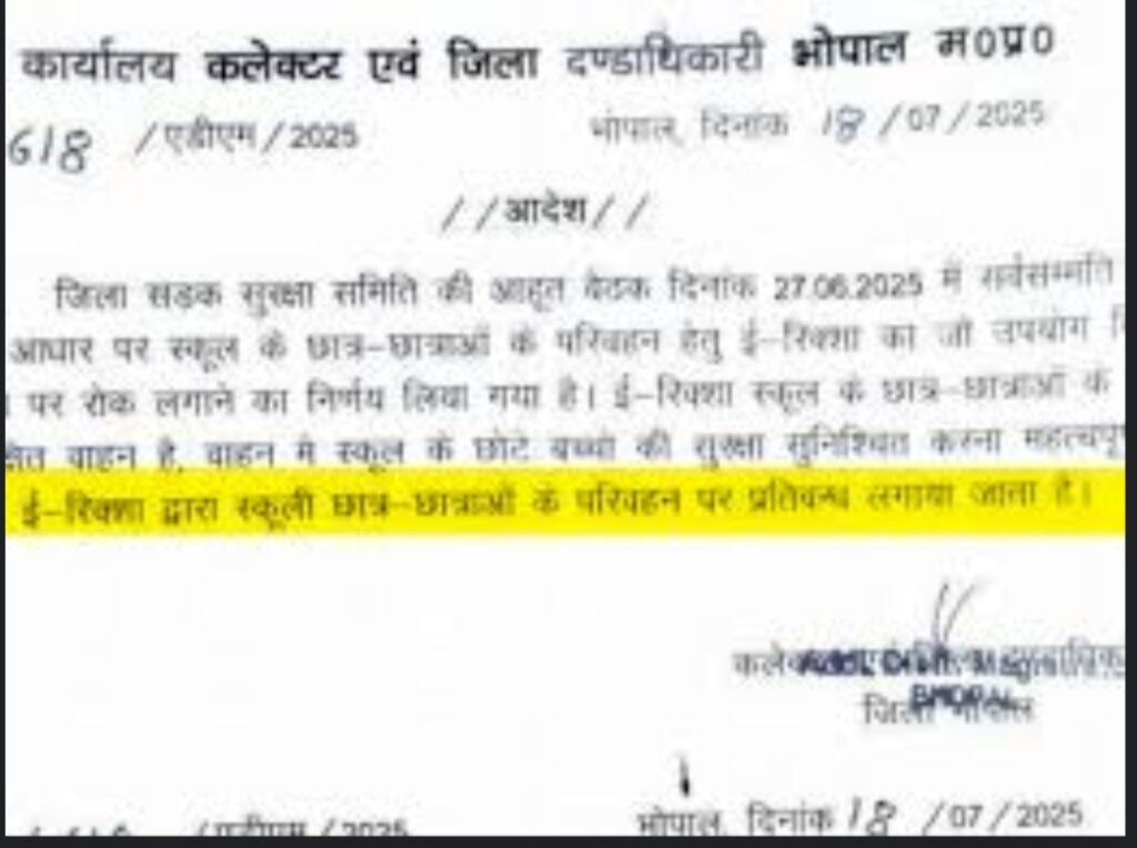 भोपाल, मध्य प्रदेश: राजधानी भोपाल में ई-रिक्शा सेवाओं पर लगे प्रतिबंध के बाद जनता की परेशानियों की सच्चाई अब वीडियो क्लिप्स और जमीनी साक्ष्यों के ज़रिए सामने आ रही है। एक वायरल वीडियो क्लिप में प्रभावित नागरिकों की स्पष्ट नाराज़गी और दैनिक जीवन पर पड़े असर की तस्वीर उभरकर सामने आती है।