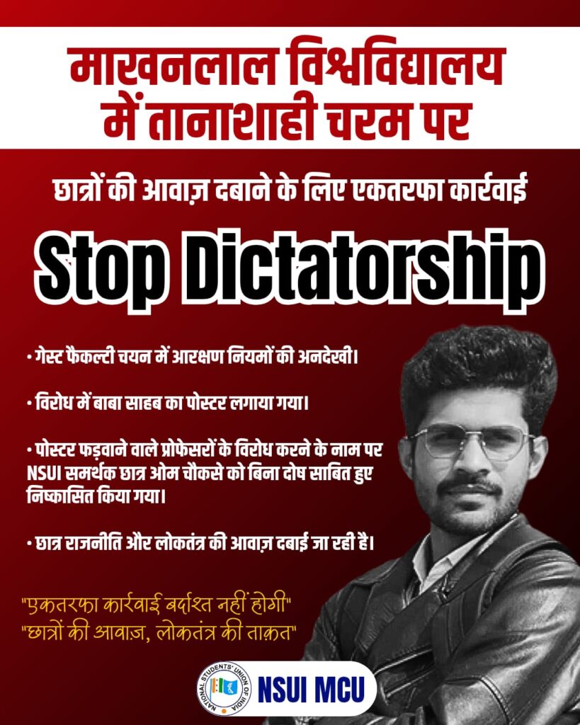 उनका यह भी कहना है कि पोस्टर फड़वाने वाले प्रोफेसरों के खिलाफ आवाज उठाने के नाम पर NSUI समर्थक छात्र ओम चौकसे को बिना किसी गलत साबित हुए ही निशाना बनाया गया और विश्वविद्यालय से निष्काषित किया गया। छात्र नेताओं का मानना है कि यह कदम एकतरफा है और इससे लोकतंत्र की भावना को ठेस पहुंची है। वे कहते हैं कि विश्वविद्यालय को निष्पक्ष जांच के बाद ही कोई कठोर कदम उठाया जाए।