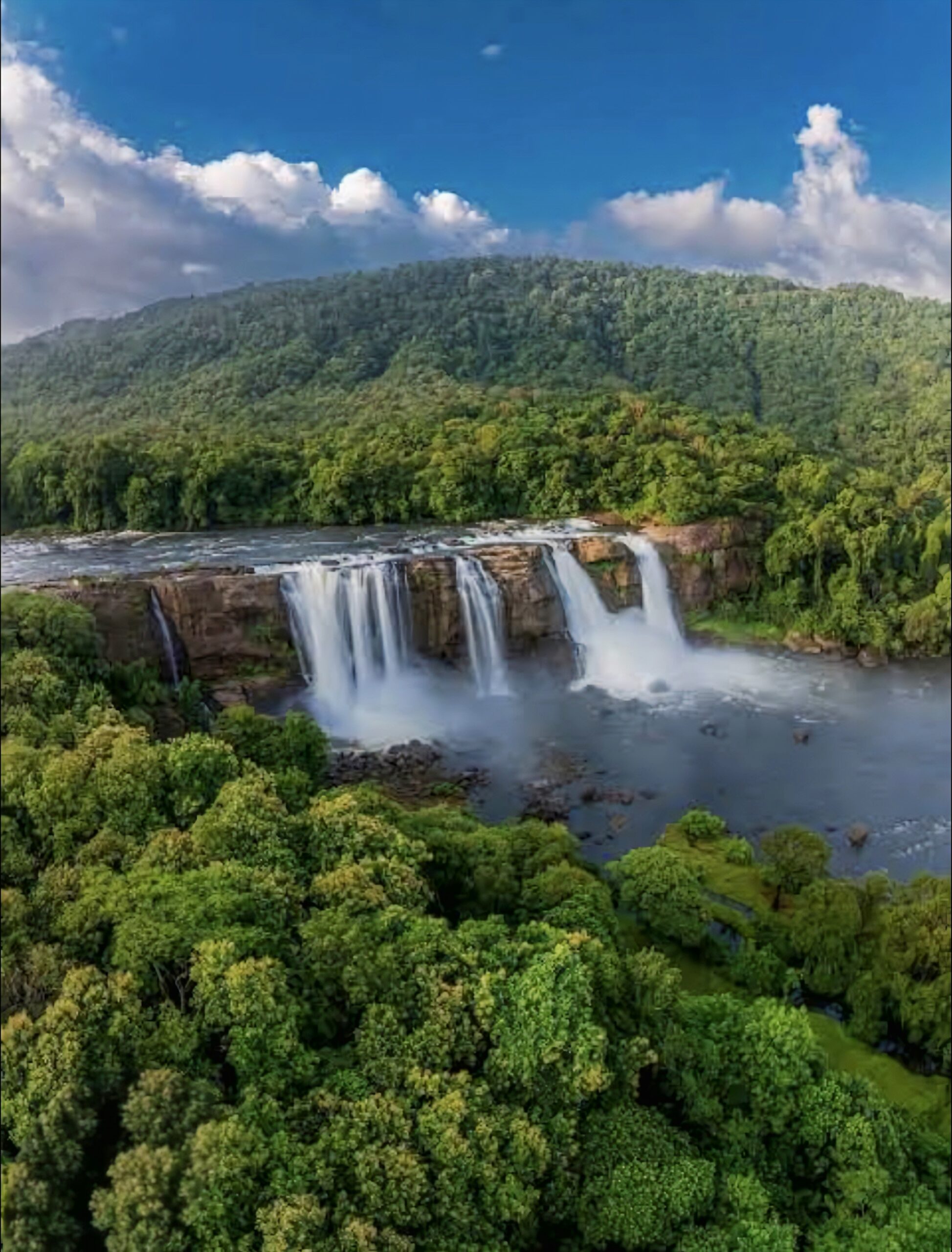 अथिराप्पिल्ली जलप्रपात लगभग 80 फीट की ऊंचाई से गिरते पानी का विशाल नजारा पेश करता है। बरसात के मौसम में यह जलधारा इतनी प्रचंड होती है कि दूर खड़े होकर भी धुंध जैसे पानी की बूंदें चेहरे पर महसूस होती हैं। इसका चौड़ा फैलाव और गूंजती ध्वनि इसे बिलकुल “नायग्रा फॉल्स” जैसा अनुभव देती है, इसलिए इसे “Niagara of India” कहा जाता है।