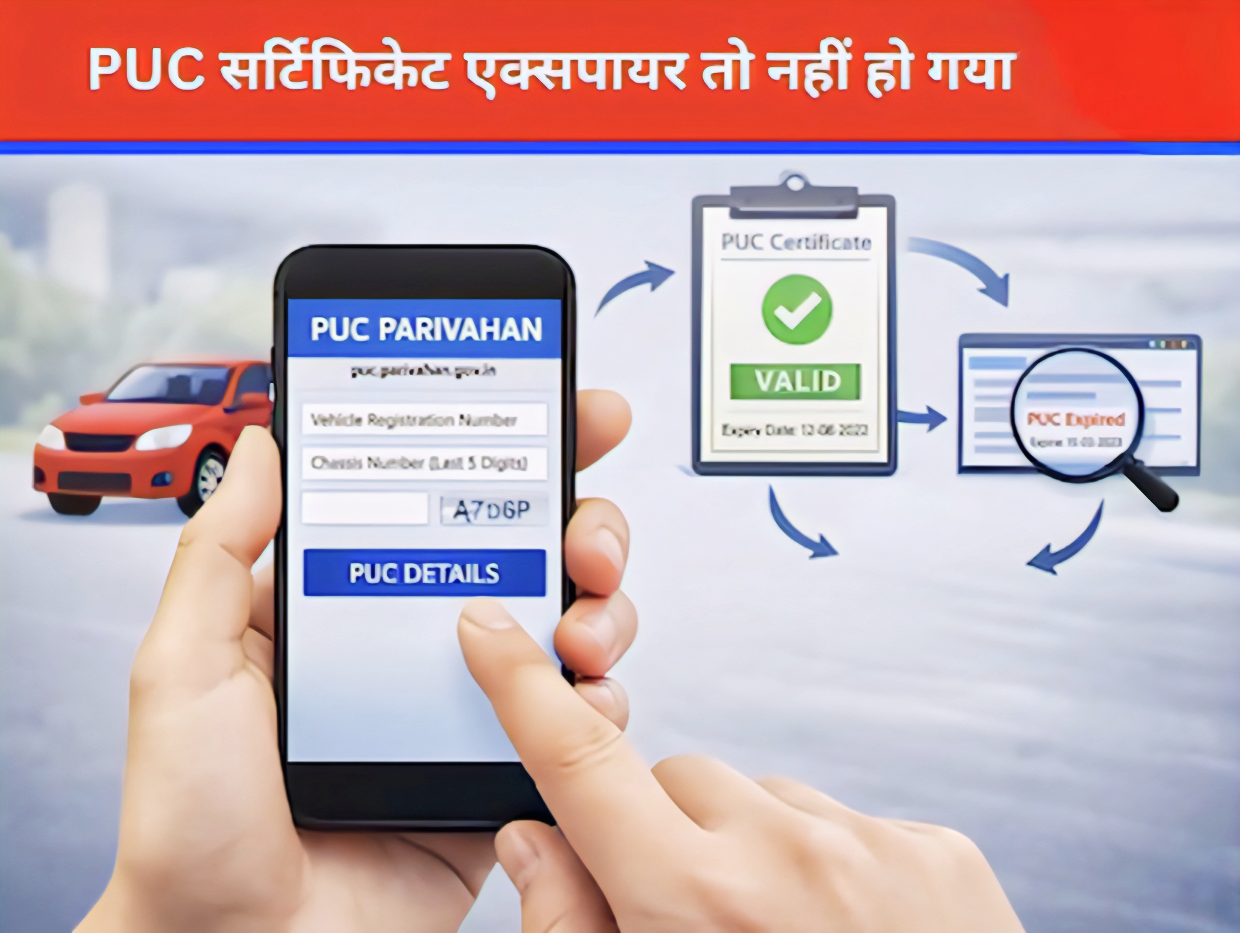 आप घर बैठे कुछ मिनटों में अपना PUC स्टेटस ऑनलाइन चेक कर सकते हैं। तरीका बेहद सरल है: