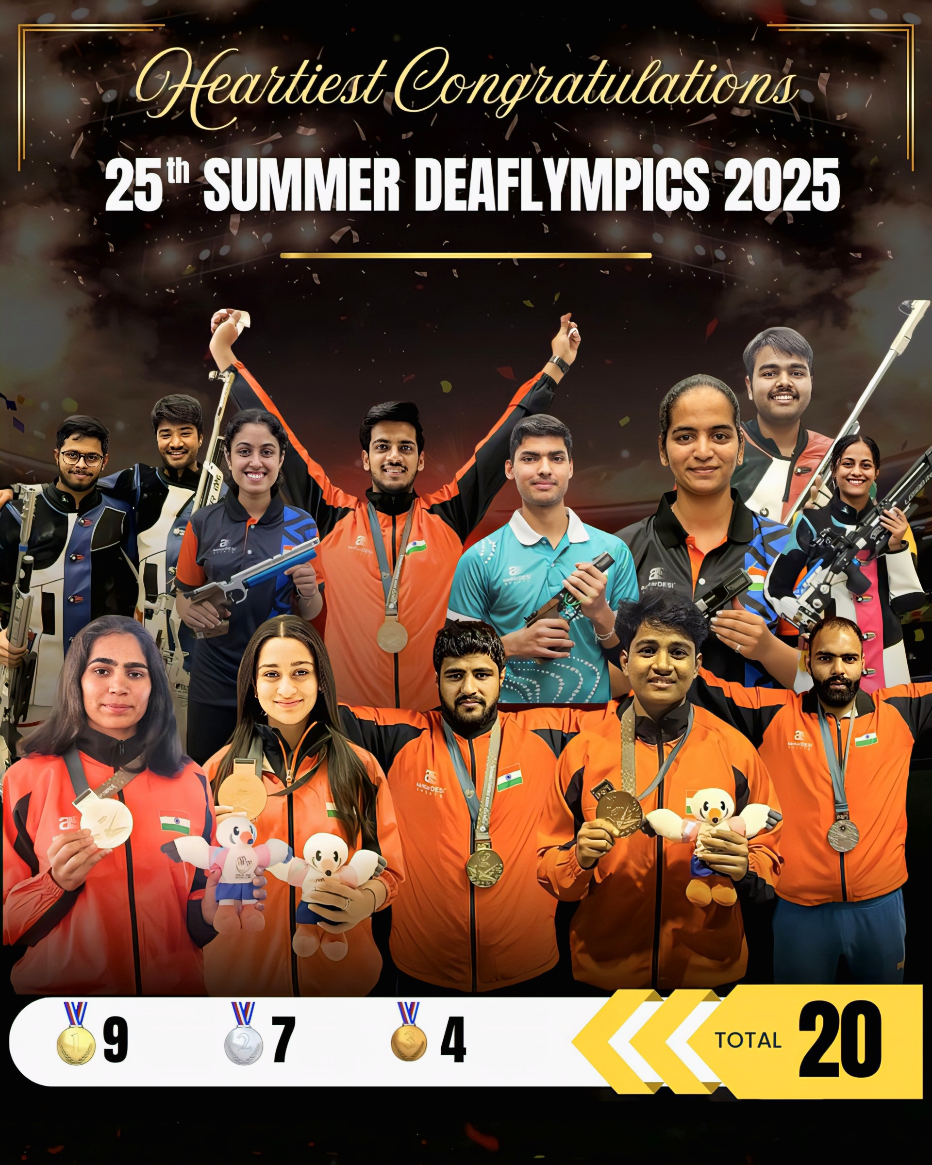 20 मेडलों की इस झड़ी ने भारत के डिफॉलिंपिक्स इतिहास में नया रिकॉर्ड बनाया। पहले सबसे बेहतर प्रदर्शन था, 2022 के caxias do sul में 16 मेडल से। अब 2025 में स्लोवेर मेडल टैली को पार कर दिया गया। विशेषकर, शूटिंग में 16 मेडल, यह दर्शाता है कि भारत में इस खेल की तैयारी और प्रतिभा कितनी मजबूत है।