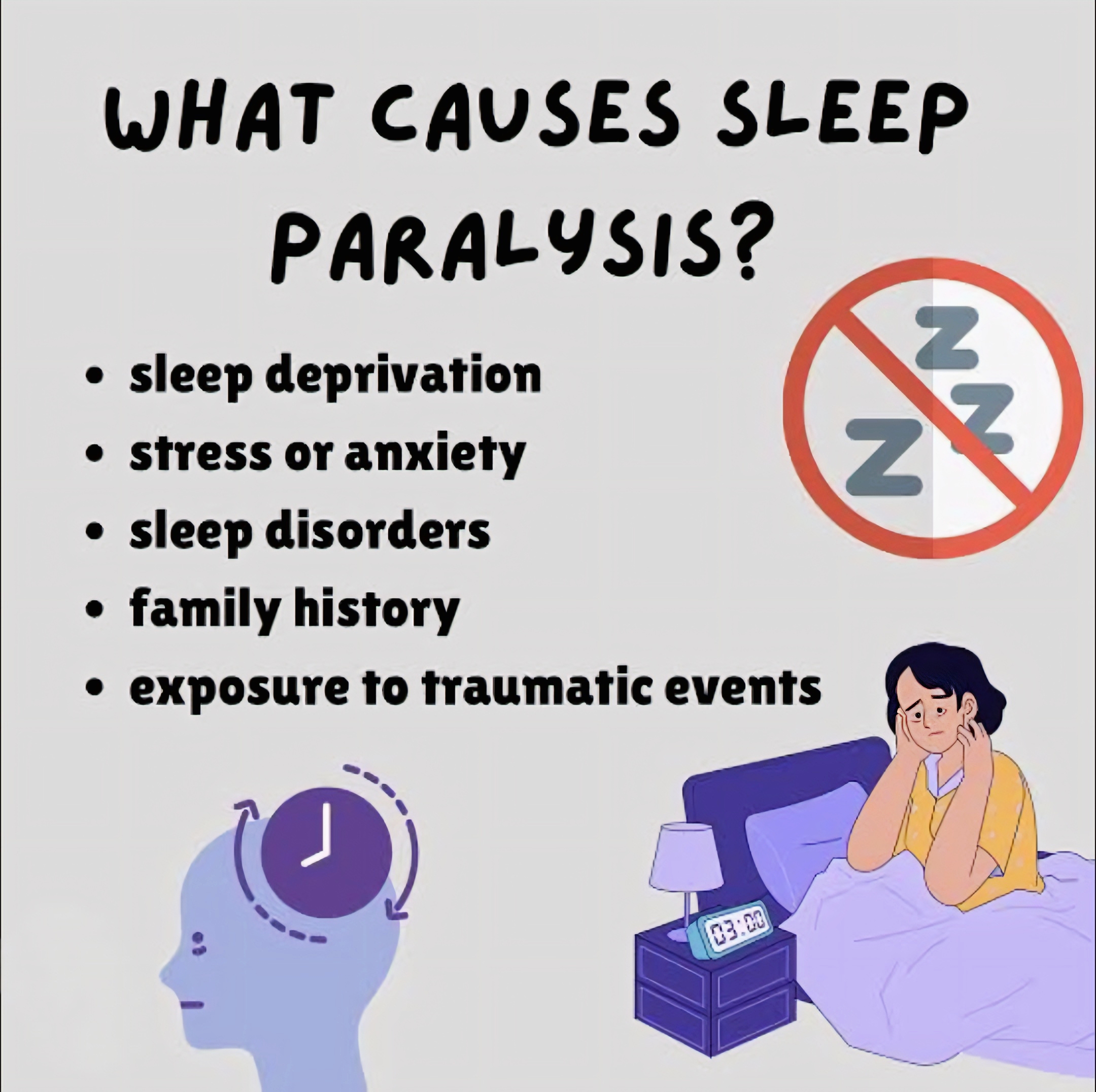स्लीप पैरालिसिस के कई कारण हो सकते हैं, जैसे:
